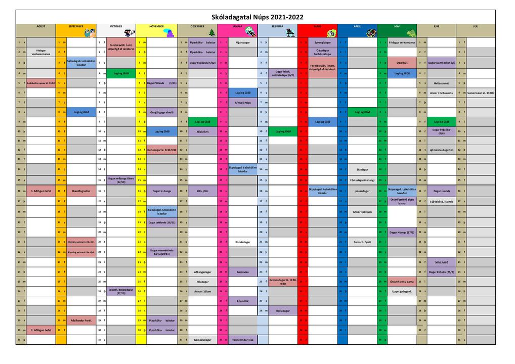 Skóladagatal 2021-2022