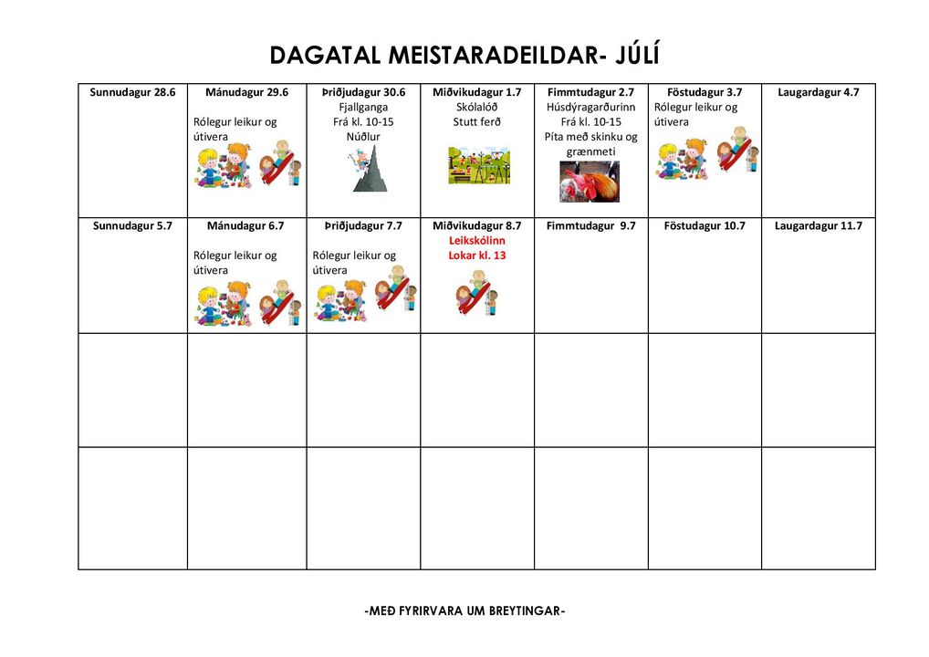 Meistaradeildin er ný hjá okkur í sumar, tilraunaverkefni með elstu börnin sem við munum svo meta, börn, starfsfólk og foreldrar.